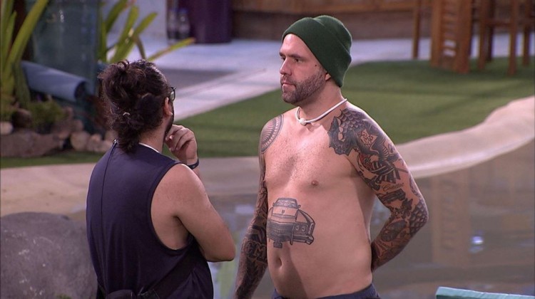 Após garantir sua imunidade pegando a bola dourada na Prova do Líder, Caruso comenta com Diego na área externa: "Teve gente que se retorceu que eu peguei a imunidade. Papito, Mahmoud...". Diego concorda e o brother continua: "Não vejo vantagem em ficar prolongando". "O jogo é uma semana de cada vez", opina o escritor. "Ele é muito inconveniente", diz o publicitário.